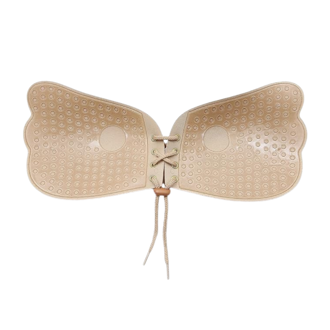 Our self adhesive bra comes with a drawstring which helps lift your boobs and create a charming deep V look. The unique butterfly shape design helps to better showcase your beautiful chest curve increasing the sexy look of the bra.