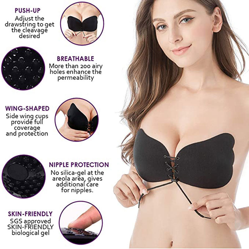 Skin Friendly: We use harmless biological silicone gel to create the bra. The adhesive gently adheres to the skin and is made from non toxic materials. Drawstring closure design makes your breasts look more full, more cleavage.