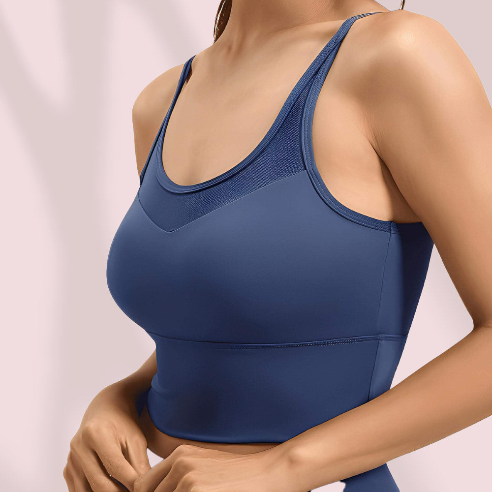 The solution isn't another "compression sports bra" or another underwire that promises not to dig (spoiler: it will). The solution is completely rethinking where and how the support happens. That's exactly why we created the Magic Mesh Back Support Sports Bra with our patent-pending Cross-Weight Distribution System.
