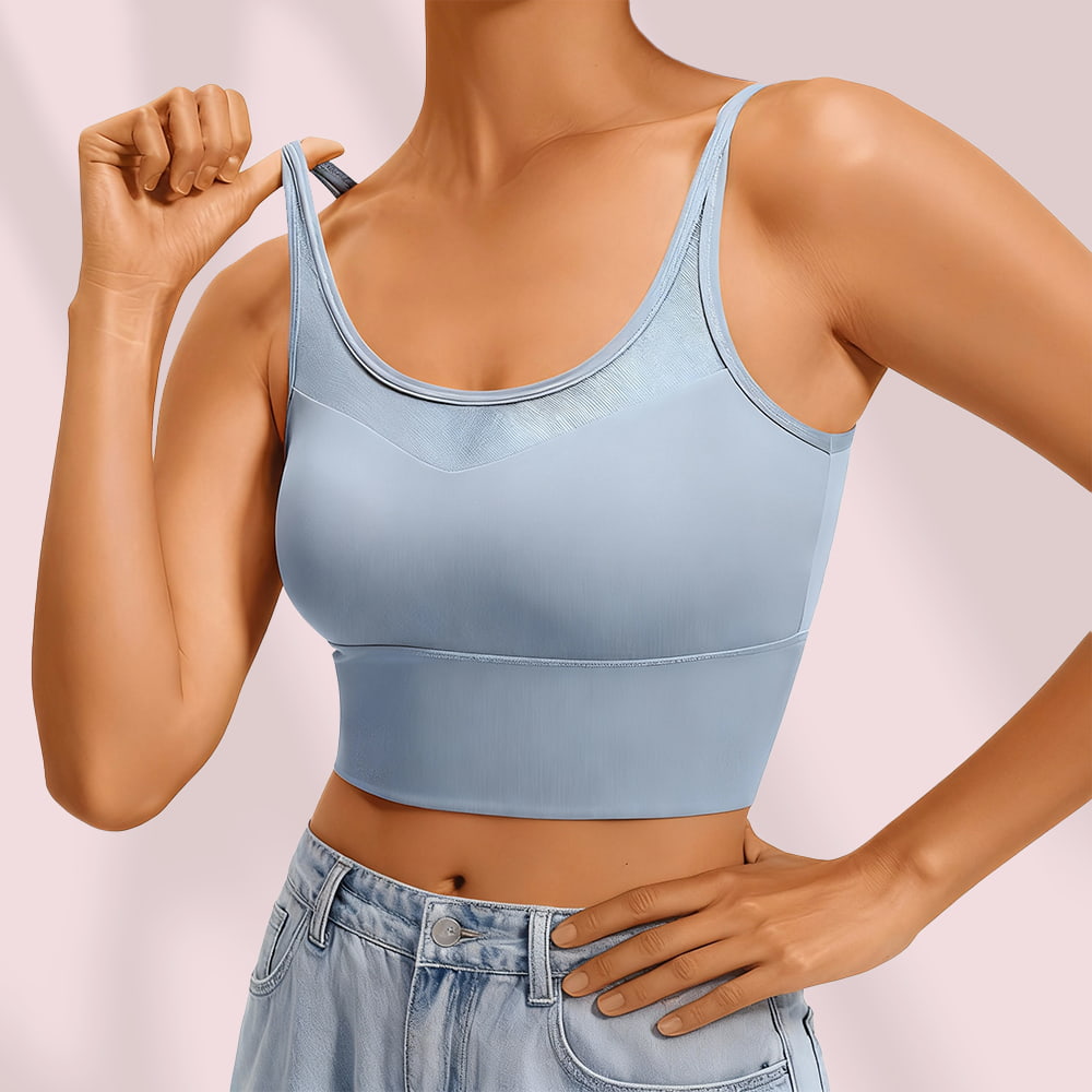 Imagine this: Tomorrow morning, you put on your sports bra and... forget about it. You take a full, deep breath during your workout—no gasping, no feeling trapped. You raise your arms to grab something from a high shelf and nothing rides up, nothing shifts, nothing digs in. You wear it through your entire 14-hour day—workout, work, errands, dinner—and when you finally take it off at night, there are no red marks. No grooves. No desperate relief. Just... comfort. All day long.